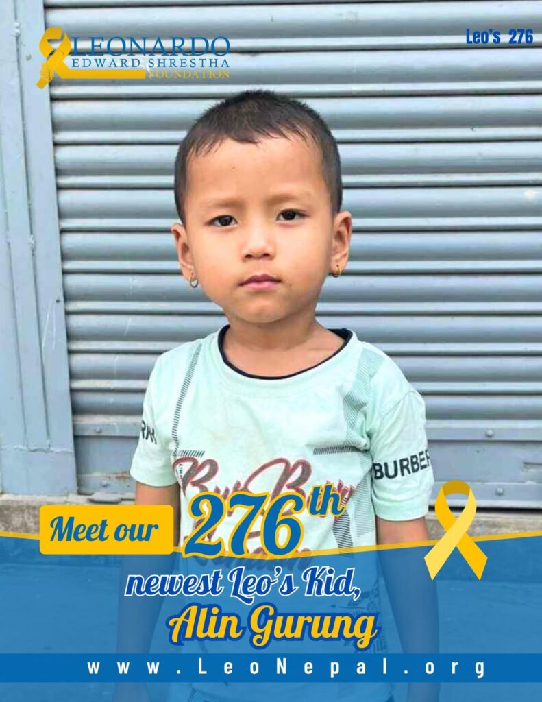 We are honored to welcome Alin Gurung, a brave 5-year-old boy from Parbatipur, Bharatpur, to our Leo’s Kids family. Alin is currently fighting Blood Cancer and is receiving treatment at Bharatpur Cancer Hospital.