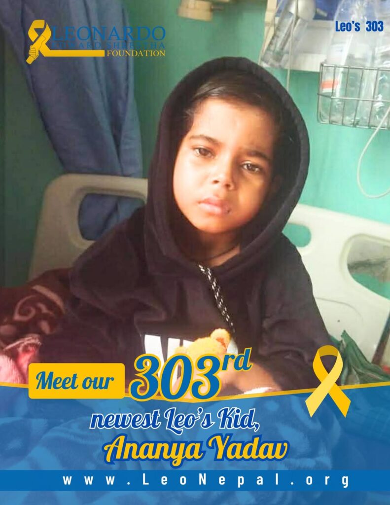 We are so happy to welcome 6-year-old Ananya Yadav from Parsa as our 303rd Leo’s Kid! This brave little girl has been diagnosed with Blood Cancer and is currently receiving treatment at Bharatpur Cancer Hospital.