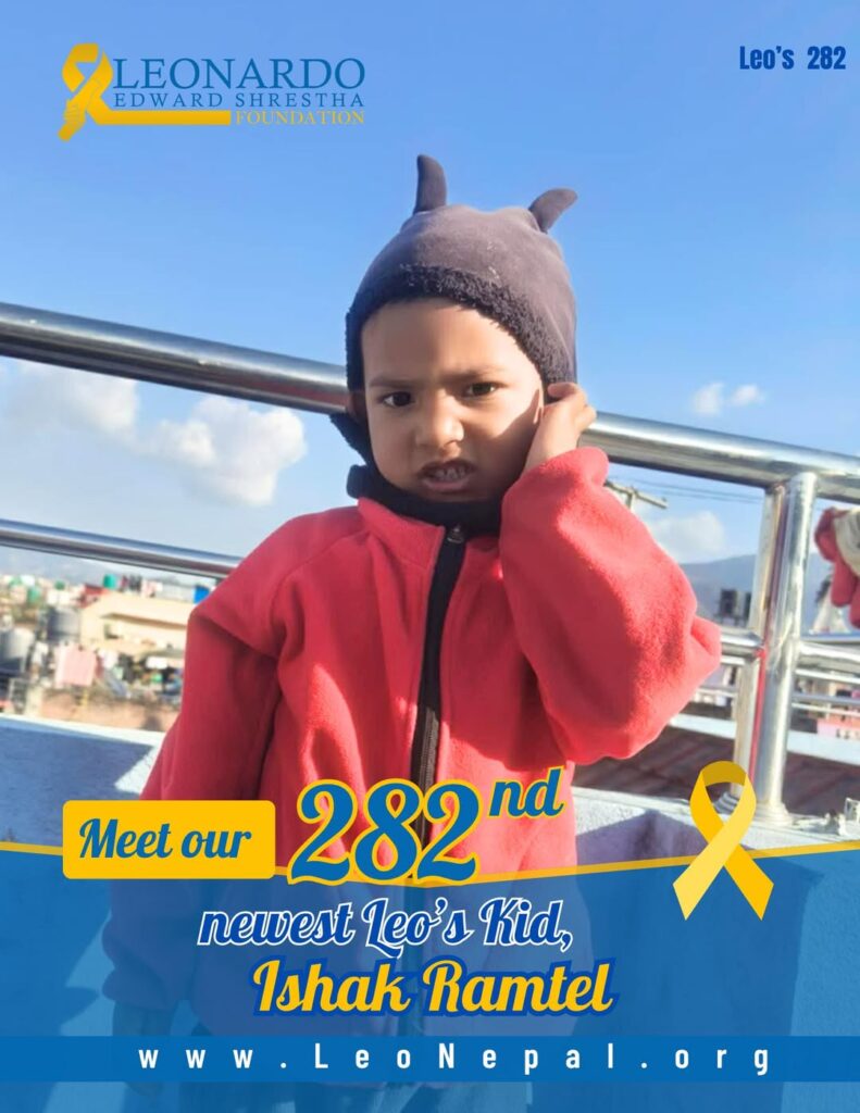 We are happy to welcome Ishak Ramtel, a brave 4-year-old boy from Pachkhal-4, Kavre, to our Leo’s Kids family. Ishak is currently fighting a tumor in his backbone muscles and is receiving treatment at Bhaktapur Cancer Hospital.